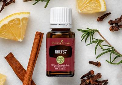 - 15 drops Thieves essential oil blend or Five Oil Blend (5 drops of Clove Essential Oil, 4 drops of Lemon Essential Oil, 3 drops of Cinnamon Essential Oil, 2 drops of Eucalyptus Essential Oil, 1 drop of Rosemary Essential Oil)